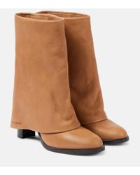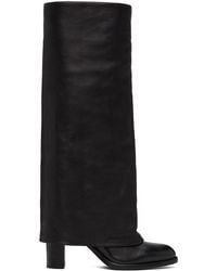 Go to SSENSEMid-calf grained lambskin boots in black. · Foldover collar · Logo embossed at outer side · Grained leather lining · Stacked leather heel with rubber injection · Leather sole with rubber injection · Heel: H3.25 Supplier color: Black