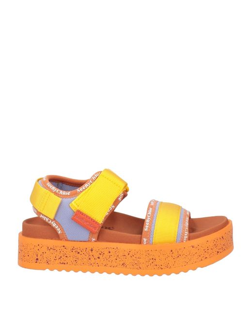 Technical sandals, grosgrain, mesh fabric, multicolor, brand logo, fabric inner, velcro fastening, pointed toe, flat, flatform , Color: Yellow , Size: 9