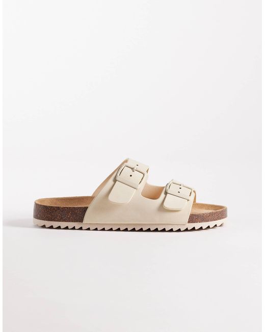 Seqwl Olsen Wide Fit Double Buckle Flat Sandals - White
