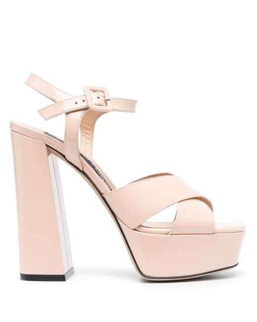 Women's Natural 90Mm Platform Sandals With Crossover Straps And Buckle Detail