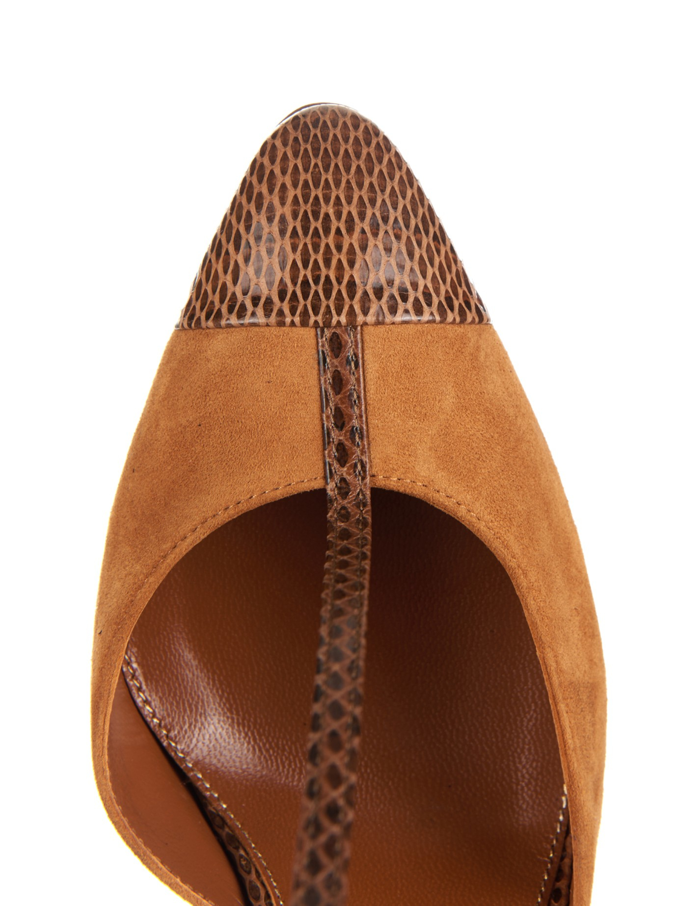 Go to MATCHESFASHIONFusing timeless style with a contemporary edge, these snakeskin and suede pumps by Sergio Rossi will complete your look with modern appeal. Accented with a T-bar strap, pointed toe and buckle-fastening ankle strap, this tan pair is finished with a high stiletto heel. Wear yours with urban separates for casual glamour.