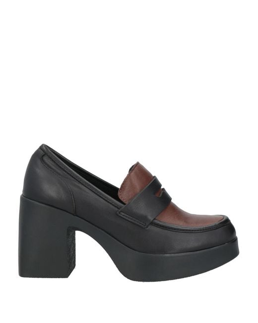 Loafers, leather, no appliqués, two-tone, leather lining, round toe, square heel, rubber sole, contains non-textile parts of animal origin , Color: Black , Size: 6
