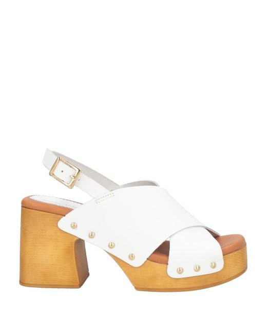 Clogs, leather, solid color, no appliqués, buckle fastening, square toe, block heel, leather lining, rubber sole, contains non-textile parts of animal origin , Color: White , Size: 6