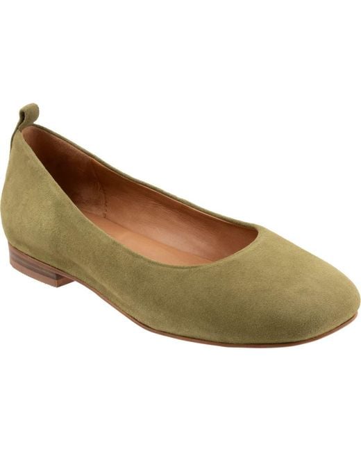 A premium leather upper and soft square toe exude modern minimalism of a versatile flat set on a cushioned footbed with built-in arch support for all-day comfort. Color: green