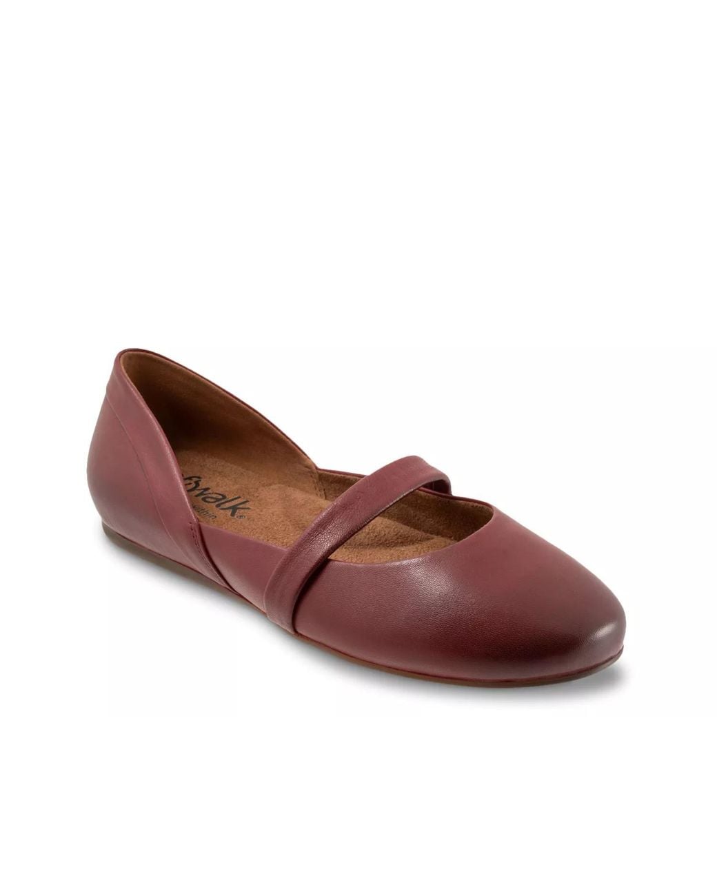 Amplify your elegance with the Samara flat from Soft Walk. Polished, burnished leather upper with a thin band across the vamp defines this attractively shaped silhouette that comes with a molded, high bouncing synthetic sole for exceptional comfort. Leather upper. Slip-on. Round toe. Synthetic lining. Molded, high-bouncing foam footbed. Synthetic midsole. Rubber sole.