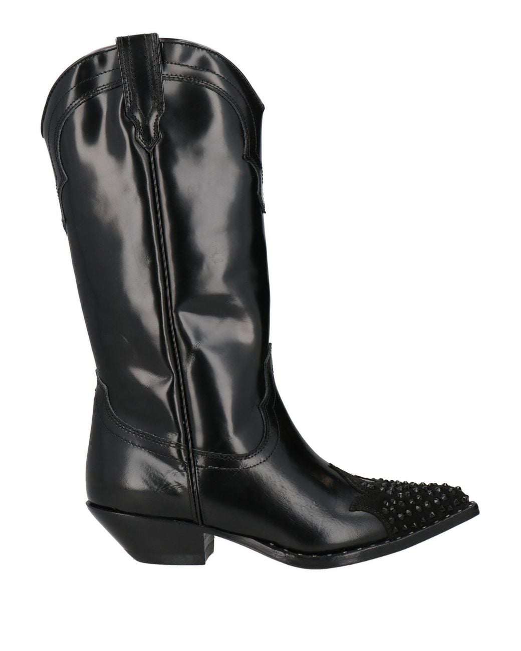 Cowboy boots, glossed-leather, suede, solid color with appliqués, crystals, leather lining, pointed toe, cuban heel, leather/rubber sole, contains non-textile parts of animal origin , Color: Black , Size: 6