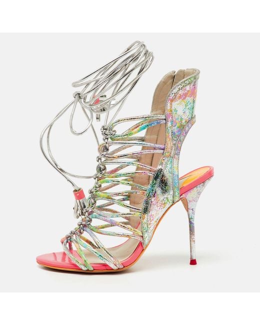 Women's Metallic Multicolor Leather Lacey Tie Up Sandals