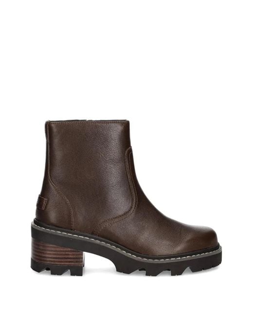 Women's Brown Joan Block-Heel Side-Zip Boots
