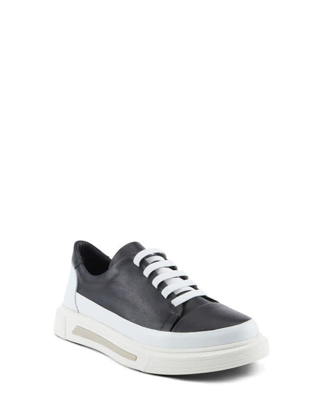 Elastic laces deliver slip-on convenience to this leather sneaker set on a sporty platform and removable leather insole. Color: white