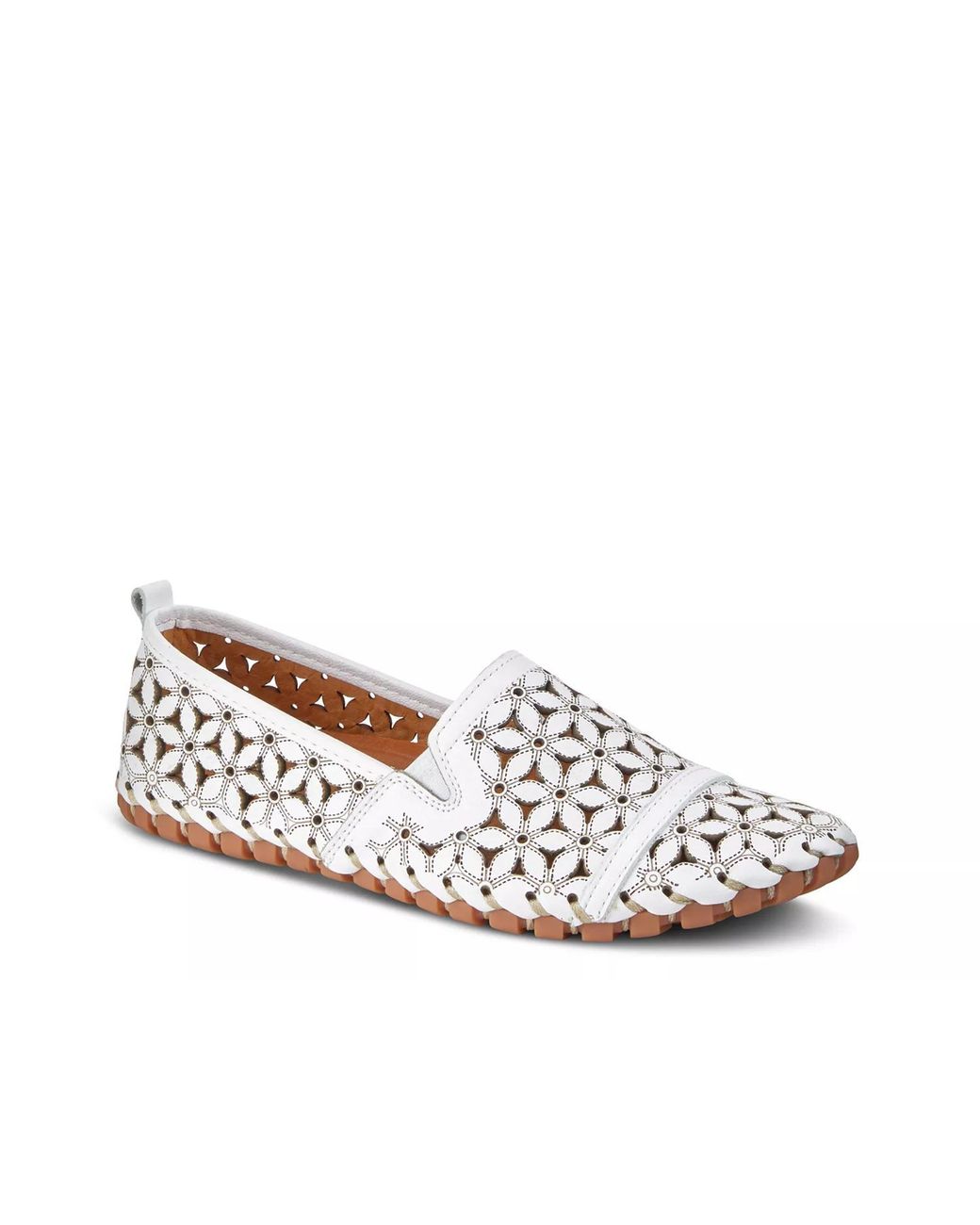 Flowers make everything beautiful and so does the Flowerflow loafer from Spring Step. Gorgeous floral laser cutouts breathe new life into the classic slip-on silhouette of this leather loafer. Color: white
