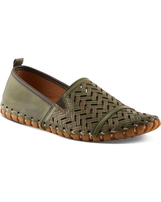A leather upper and lining pair with whipstitched construction to deliver total flexibility to this perforated flat. A cushioned insole with built-in arch support offers comfort and stability. Color: green
