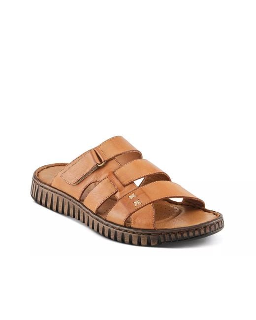The Spring Step Olly sandal can keep you hooked to its unparalleled comfort. The strappy slide comes designed with a hook-and-loop closure, ensuring a snug fit. A flexible leather footbed lets you unwind in comfort. Color: brown