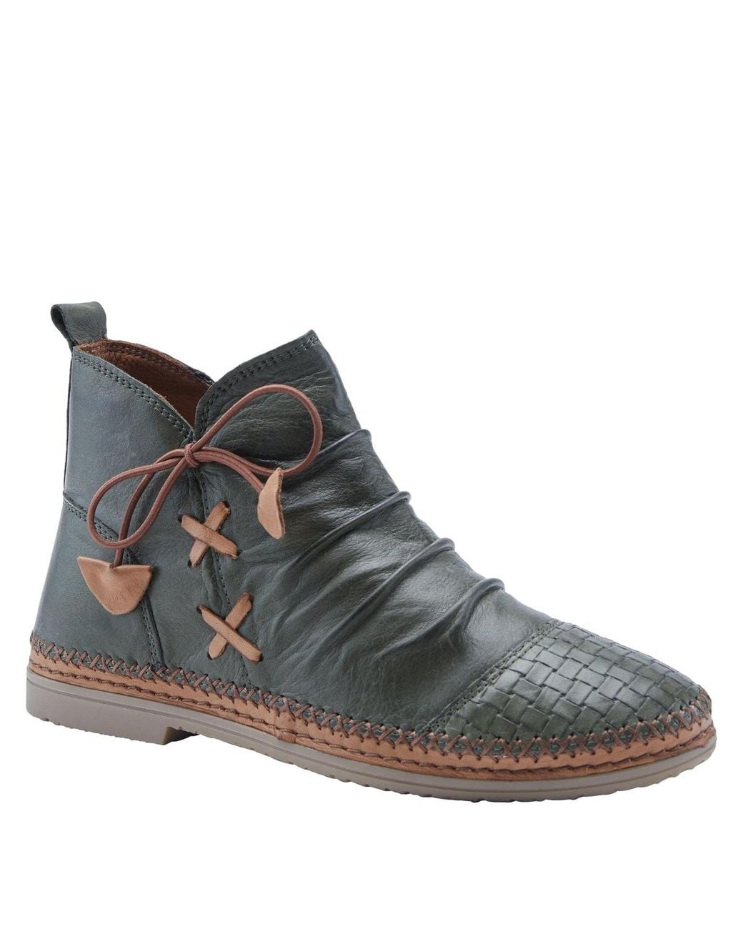 Elevate your everyday footwear with the handcrafted flair of the Spring Step Pomeroy bootie. Made from ultra-soft leather, this stylish boot features a handwoven basketweave toe, decorative laces, and a low-profile heel for relaxed sophistication. A cushioned insole ensures comfort with every step, while the flexible outsole provides freedom of movement. Ideal for casual wear or weekend looks, Pomeroy is both boho-chic and endlessly wearable. Leather Upper, Textile Lining, Textile Insole, Rubber Outsole. Color: brown