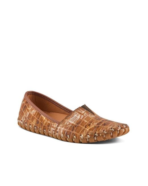 The Kathaleta flat from Spring Step features a signature Fusaro construction that is Opanka hand-stitched for superior flexibility and durability. The removable cushioned leather insole with extra arch support keeps you comfortable while the center elastic gore ensures a flexible and secure fit for easy slip-on wear. Color: brown