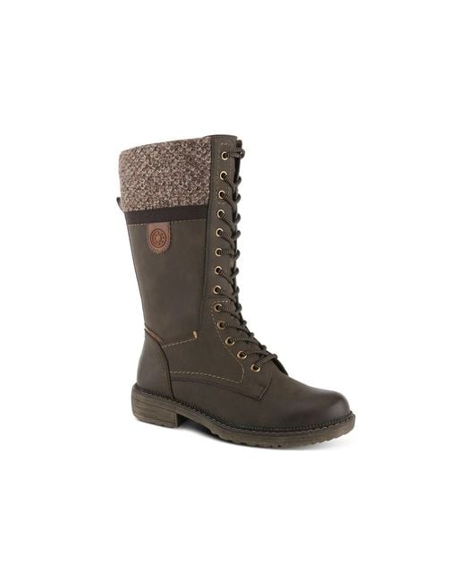 Stay cozy and stylish this cold weather season with the Yosemite boot from Spring Step. This pair features a water-resistant upper and a lugged sole for sturdy steps. The sweater knit cuff at the topline keeps you warm when the temperatures drop. Color: black