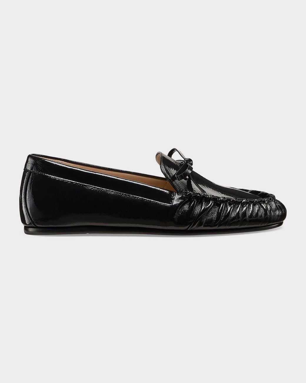 - Britt Crinkled Patent Leather Bow Loafers