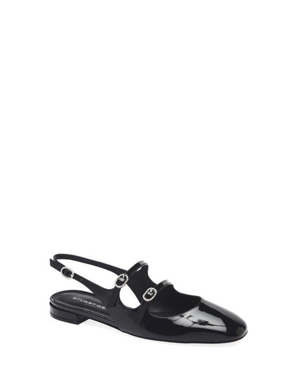 Dainty crystals add a festive finish to the round buckles of a Mary Jane flat with a glossy patent-leather finish. Leather upper and lining/synthetic sole Imported Color: black