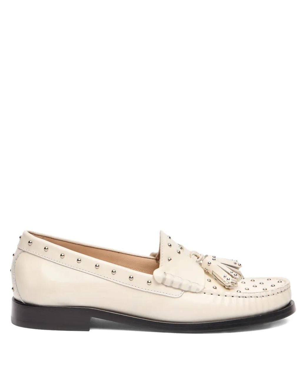 Cream white stud embellishments penny slot design Size: 36. Gender: Female. Material:Calf Leather/Calf Leather/Leather. Color: natural