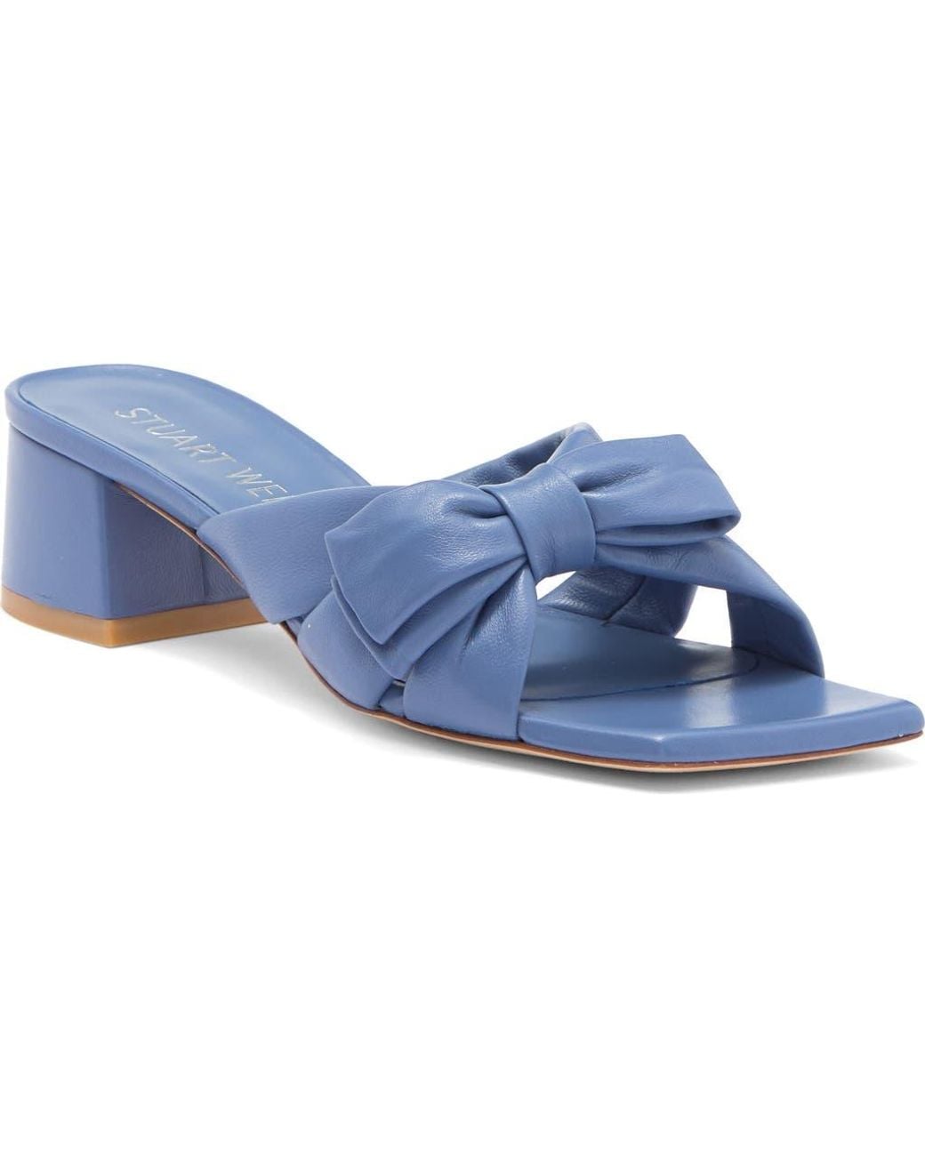 Complete your look with the contemporary poise of a block-heel sandal complete with a bold bow embellishment. 1 3/4" heel Leather or synthetic upper/synthetic lining/leather sole Imported Color: blue