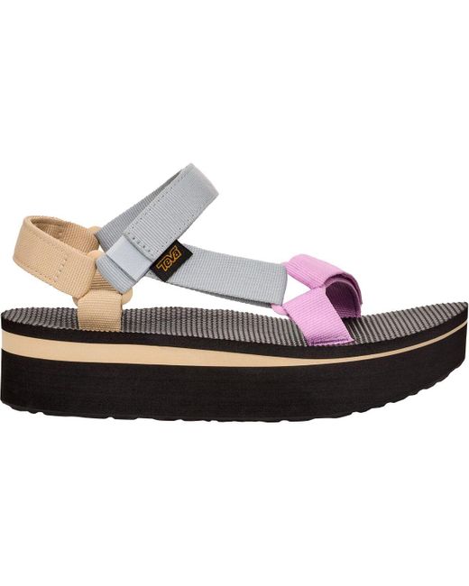 The Women's Flatform Universal Sandals aren't the average pair of Tevas. With generous 2. 25-inch midsoles, the Flatforms stand tall among their peers in terms of style and height. The uppers maintain Teva's classic look with soft polyester webbing and a hook-and-loop closure. And so we stay steady up there, the sandals have grippy rubber soles providing sure footing. Color: multicolor