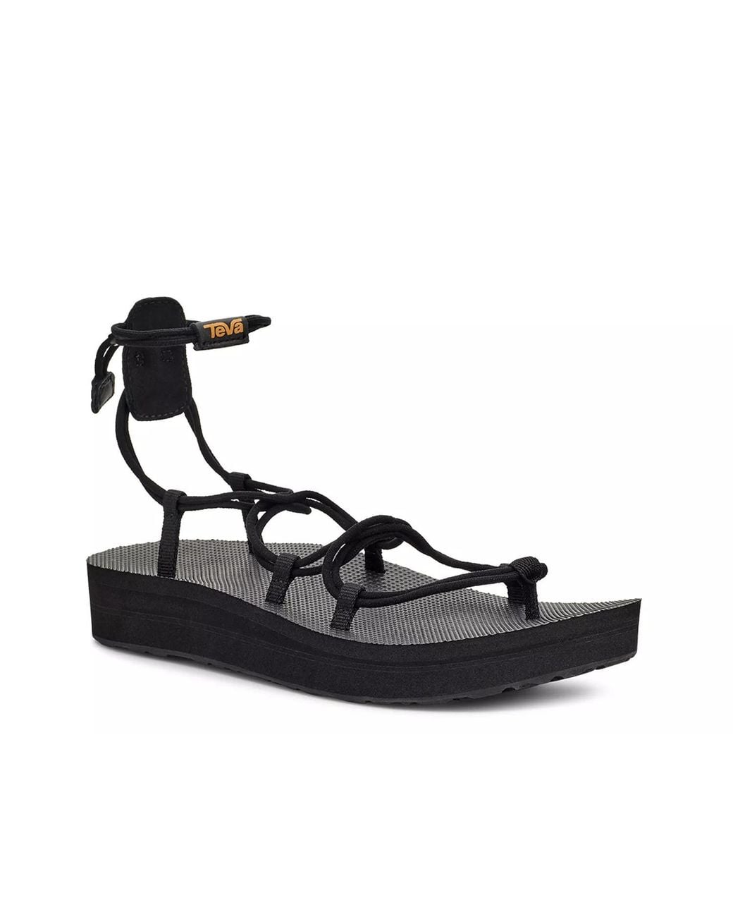 Highlight a summery look with the bold Midform Infinity sandal from Teva. This platform pair sports a trendy lace-up design, while the molded EVA footbed and midsole provide extra cushioning. Color: black