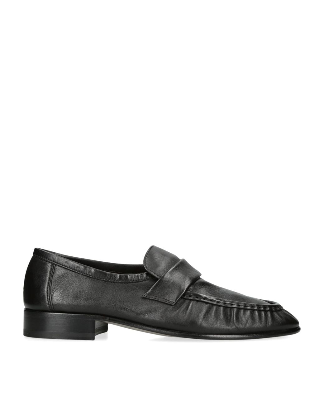 Comfort is to be expected from the Soft loafers, a faultless daytime style from The Row. A relaxed slip-on feature and thin yet durable heel increase flexibility as you waltz through the city, while pleated details echo vintage styles – note how the same number of pleats have been reflected on each side, lending an undeniably satisfying finish. Color: black
