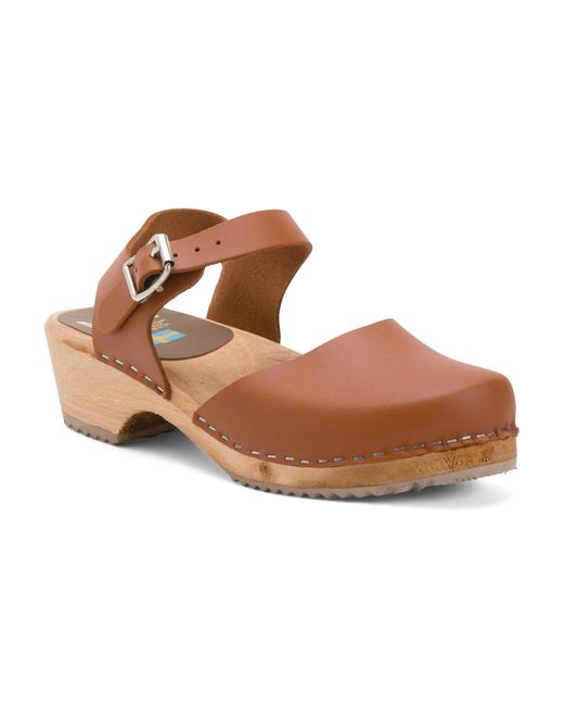 Women's Brown Leather Sofia Clogs For