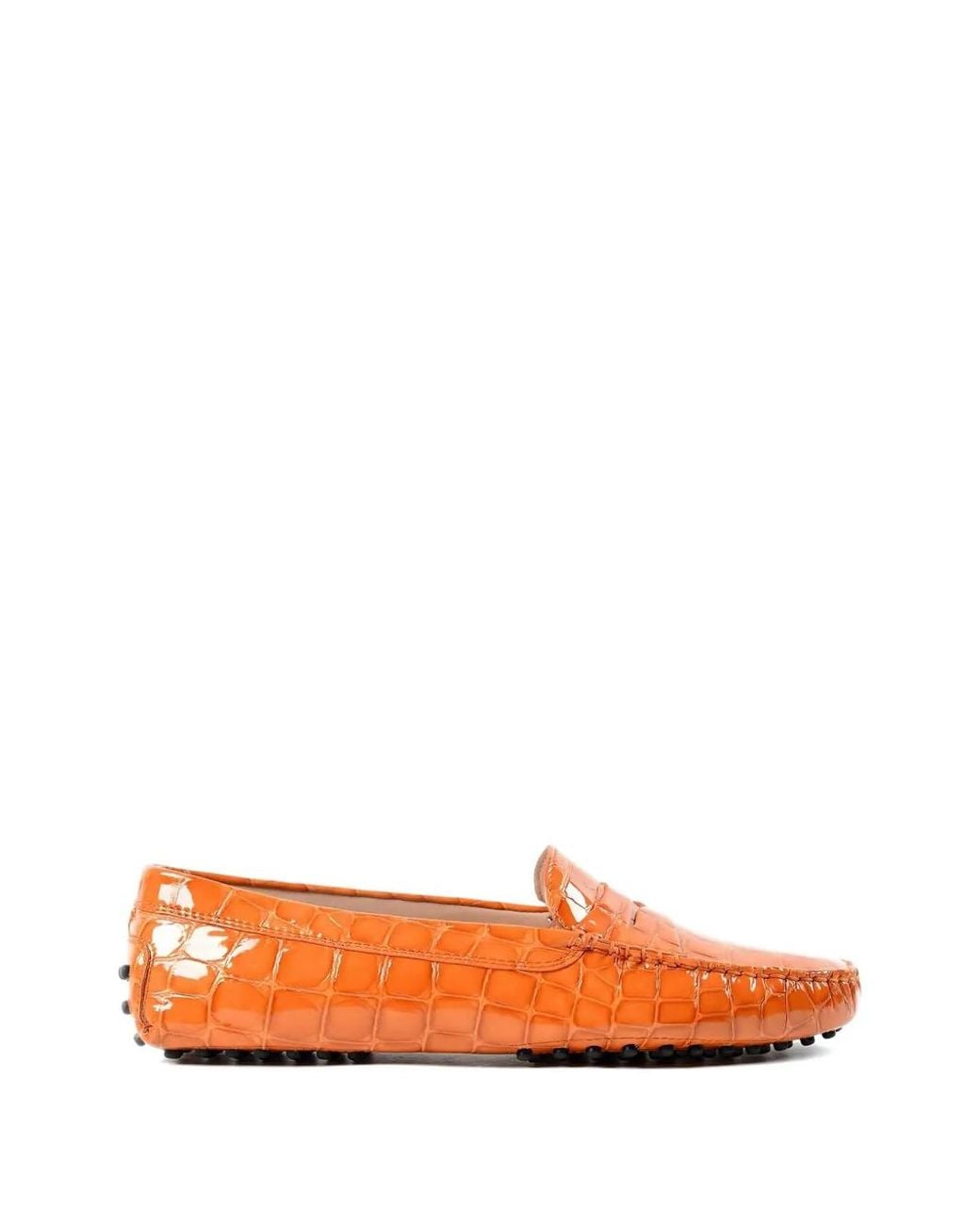 Orange patent leather corcodile effect loafers from Tod's. Size: 37. Gender: Female. Material:Rubber/Patent Leather/Leather/Leather.
