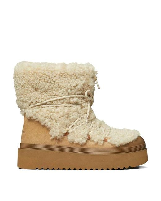 Mellow Shearling And Suede Lace-Up Boots - Natural