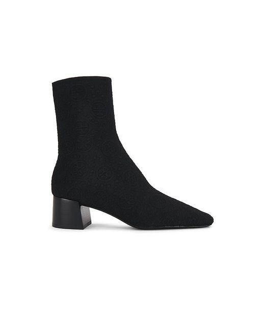 Tory Burch Stretch Ankle Boot in Black. - size 10 (also in 6, 6.5, 7, 7.5, 8, 8.5, 9, 9.5) Tory Burch Stretch Ankle Boot in Black. - size 10 (also in 6, 6.5, 7, 7.5, 8, 8.5, 9, 9.5) Textile upper with leather sole. Pull-on styling. Cushioned leather footbed with textile lining. Square toe. Block heel. Approx 45mm/ 1.77 inch heel Approx 158.75mm/ 6.25 inch shaft Opening measures approx 11 in circumference. TORY-WZ47. 164260-006. The Rising Star of Retail in 2005, Tory Burch's latest collection continues to prove why she's become a socialite's best friend. Beautifully tailored, uniquely detailed, these are hardly your daughter's clothes. Color: black