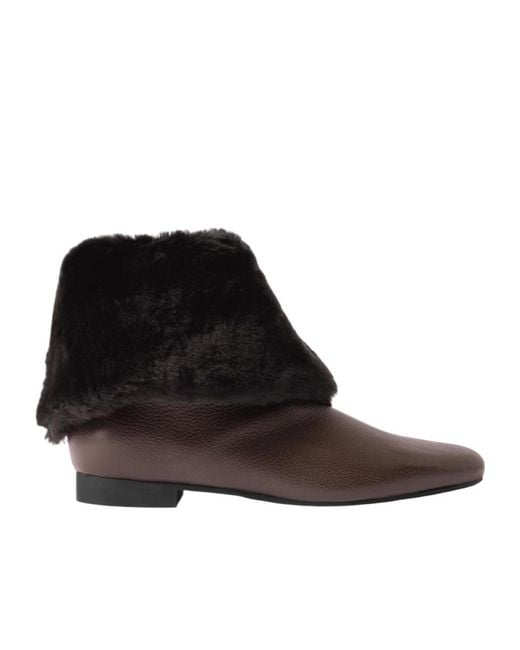 Shearling-Cuff Boots - Brown