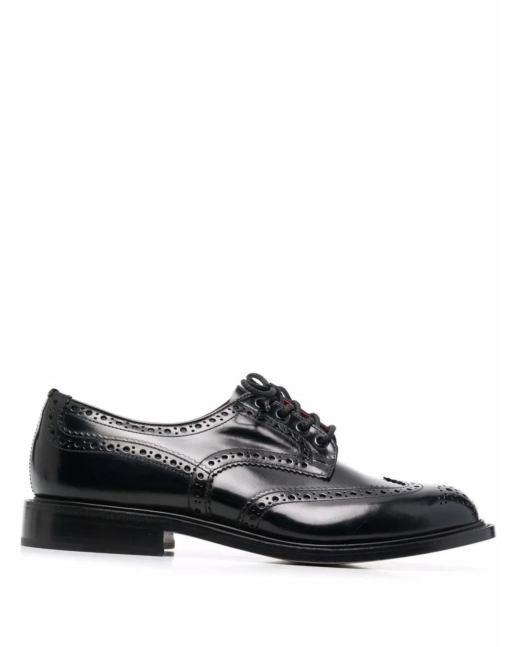 Black leather perforated detailing almond toe front lace-up fastening branded insole flat leather sole Size: 8. Gender: Male. Material:Leather/Leather/Leather. Color: black