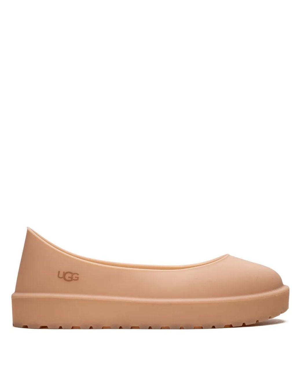 Chestnut brown slip-on style water-resistant logo print to the rear round toe flat rubber sole When buying this unisex item, keep in mind that it is graded in standard men's sizing. Size: XS. Gender: Unisex. Material:Rubber/Rubber/Rubber. Color: natural