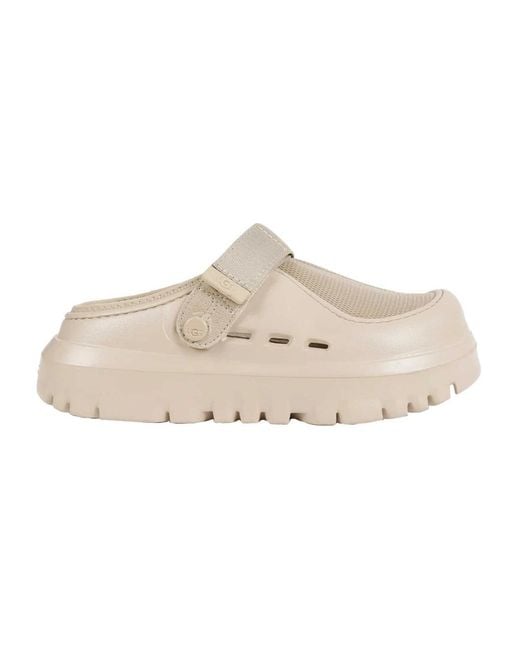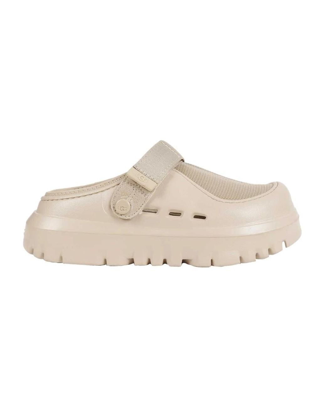 UGG Peak Mod Clogs combine a sculptural, future-forward aesthetic with a breathable mesh slip-on silhouette and a lightweight sugarcane-based EVA sole for comfortable, on-the-go wear. Key attributes: Beige | Mesh and rubber | Breathable mesh construction | Lightweight sole | Rubber outsole for traction | Slip-on silhouette | Adjustable webbing back strap | Voluminous, sculptural profile | Round toe | Streetwear-inspired silhouette | Composition & care: Mesh | Rubber | Sugarcane-based EVA | Webbing Color: natural