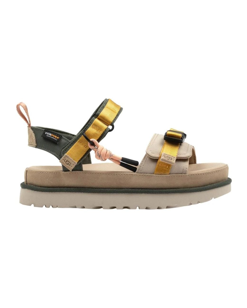 UGG Goldenstar Wildwood Sandals combine a platform sole with adjustable straps for comfortable, everyday wear. The style pairs fabric construction with suede accents for a casual street-ready look. Key attributes: Beige | Multicolor | Fabric | Adjustable straps | Heel pull tab | Platform sole | Round toe | Suede accents | Logo label on the back | Dimensions & fit: Size 38 IT | Composition & care: 61% fabric | 39% leather Color: metallic