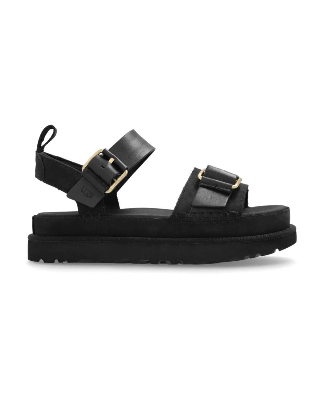 UGG Goldenstar Villa Platform Sandals combine a chunky platform sole with two wide adjustable straps for elevated everyday comfort and refined casual looks. Key attributes: Black | Leather | Comfort-oriented platform | Stable, thick sole for walkability | Adjustable straps for a secure fit | Stable platform sole | Two wide adjustable straps | Large gold-tone buckles | Back heel loop | Platform silhouette | Dimensions & fit: Sole height: 4 cm | Sole height (highest point): 4.5 cm | Composition & care: Leather | Rubber