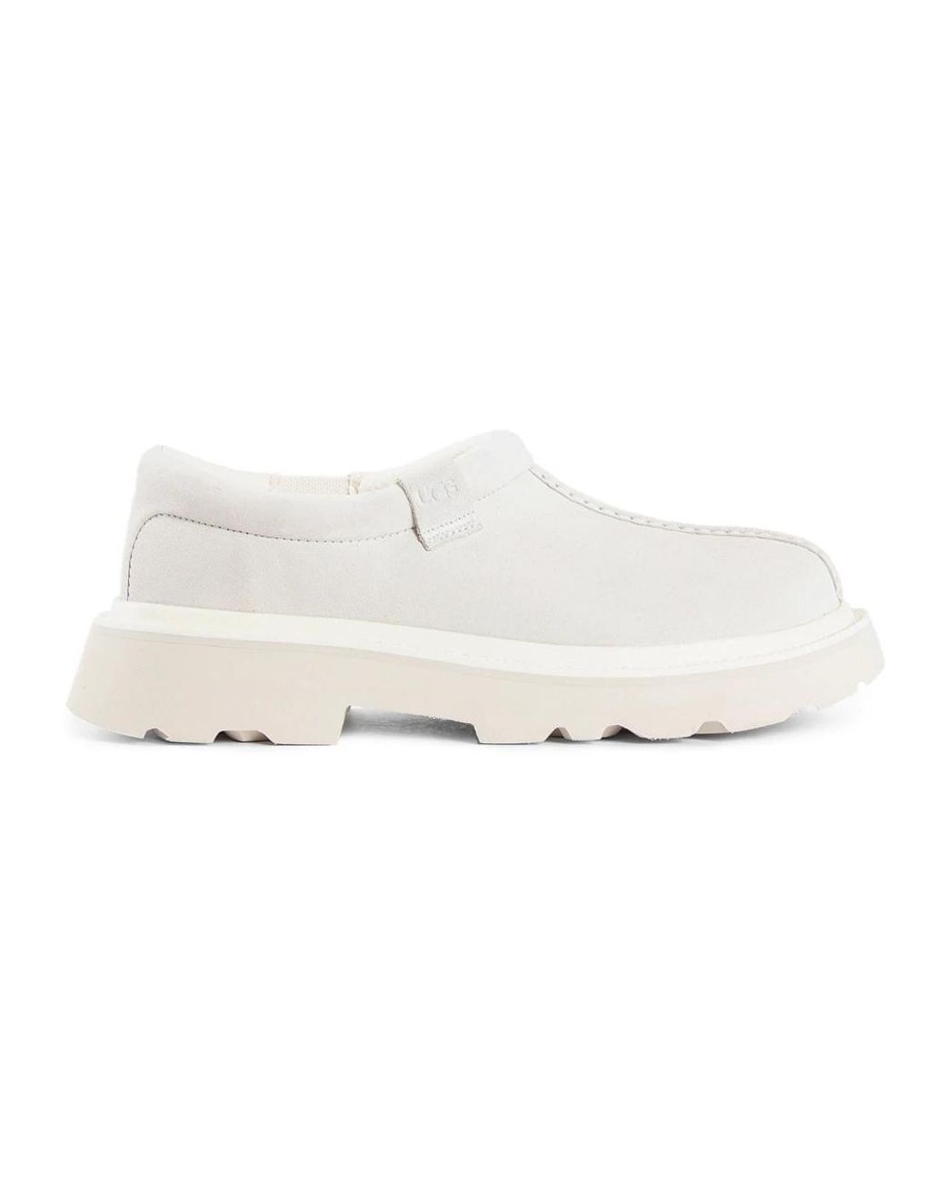 UGG men's flats in jasmine suede with side elastic gussets, peppermint-based anti-odor lining, and Sugarcane EVA sole.