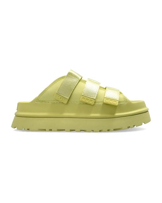 The UGG Goldenglow Slide epitomizes elegance and comfort, perfect for warm days. Crafted in a timeless light green color, these slides combine modern design with functionality. Key attributes: Green | Adjustable straps | Padded insole | Thick sole | Embossed logo | Color: green