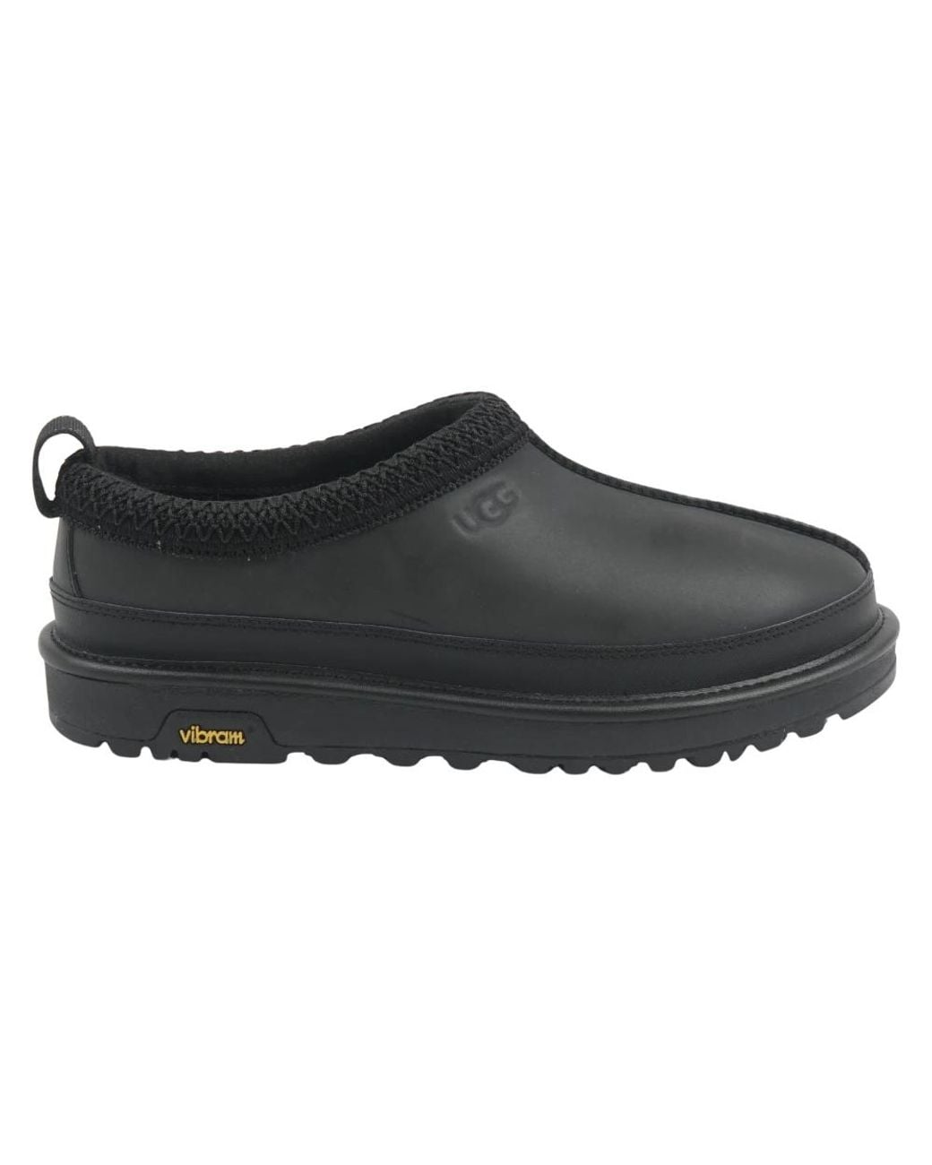 UGG Tasman Reflective is a slip-on mule that updates the classic Tasman with a reflective upper and a grippy Vibram® outsole for everyday wear and visibility in low light. Key attributes: Black Reflective | UGGplush | Reflective upper | 17mm plush lining | Vibram® outsole | Slip-on construction | Cushioned EVA midsole | UGGbraid collar | Twin seam detail | Open-heel mule silhouette | Composition & care: Lining: 60% wool, 40% Tencel™ Lyocell | Midsole: EVA | Outsole: Vibram rubber Color: black
