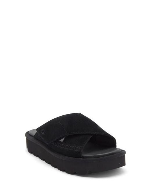 A chunky platform distinguishes this suede slide sandal built for comfort with a foam-cushioned footbed. 1 1/4" heel Leather upper/textile and synthetic lining/synthetic sole Imported Color: black
