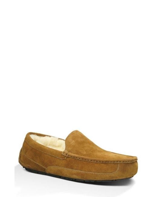 A classic loafer profile brings smart detailing to the warm comfort of a slipper made with a roomy moc toe and a rubber sole that keeps you sure-footed indoors and out. The soft, cozy lining hugs every step in a cocoon of UGGpure™, a textile made entirely from wool to feel and wear like genuine shearling, or UGGplush, a moisture-wicking textile made from a wool-rich blend but crafted to feel and wear like genuine shearling.