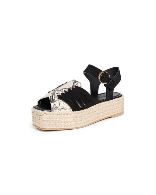 Upper: Suede. Snake-embossed trim. Braided jute midsole. Padded leather footbed. Lining: Sheepskin. Buckle ankle strap. Open toe. Rubber sole. Made in Spain. This item cannot be gift-boxed. Measurements: Heel: 2in / 50mm Platform: 1.5in / 40mm Color: black