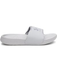 Go to Under ArmourFixed strap with rolled edges & added foam underneath for an extra comfortable fit. Drop-in EVA footbed provides underfoot cushioning. Raised sidewalls for added stability. EVA outsole delivers great durability & traction. Color: black