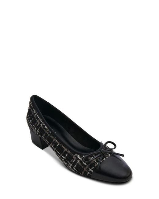 A cap toe and block heel balance a tweed pump topped with a sweet bow. 1 1/4" heel Textile upper/leather lining/rubber sole Imported Color: black