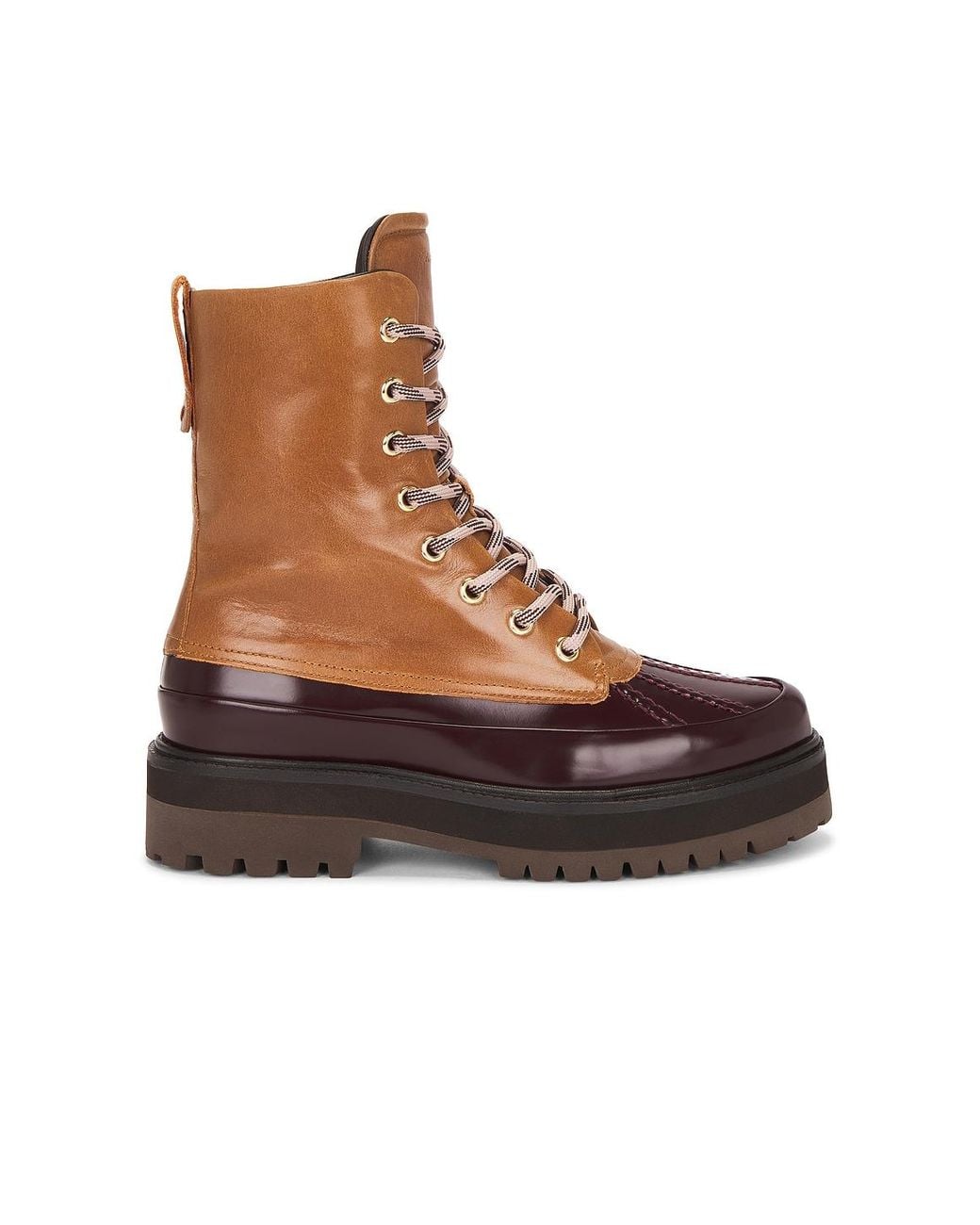 Varley Silo Winter Boot in Brown Upper: 100% Cow Leather, Lining: 100% Buffalo Leather, Outsole: 50% Rubber + 40% Eva + 10% Cow Leather. Made in Portugal. Lace-up closure. Padded ankle and footbed. Rubber lug sole. Polished brass eyelets. Rounded toe. Approx 6.7 in shaft height, 1.5 in heel height. VARF-WZ2. VAR03095. About the designer: Color: brown