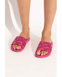 Versace Jeans Couture Women's Pink Rubber Slides With Logo