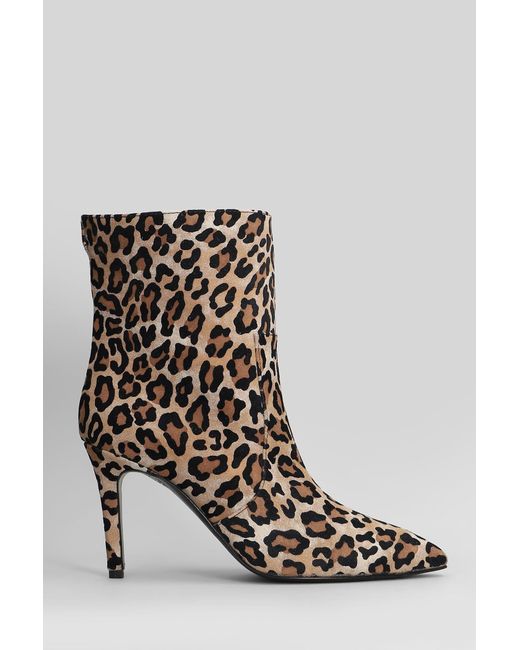 Women's Brown High Heels Ankle Boots In Animalier Suede