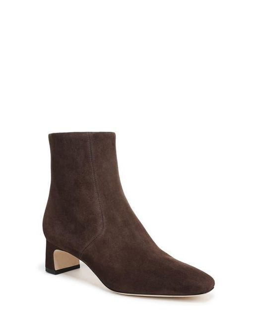 A minimalist design lends wardrobe-spanning versatility to this bootie framed with a blunted toe and sculptural set-back heel. 1 3/4" heel Side zip closure Leather upper, lining and sole Imported