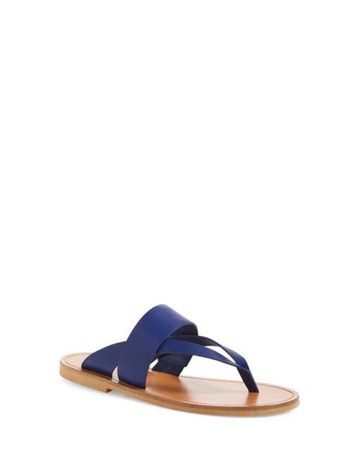A wide crossover vamp strap upgrades a classic thong sandal cast in supple Italian leather and set on a flat, flexible rubber sole. Leather upper and lining/rubber sole. By Vince; imported. Salon Shoes. Color: blue