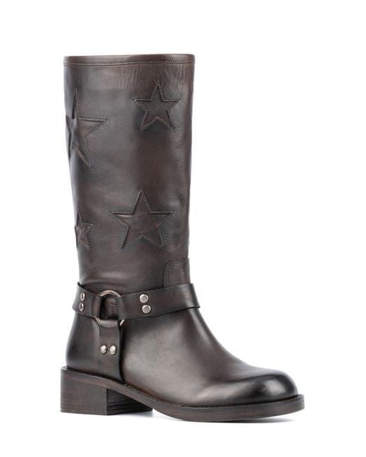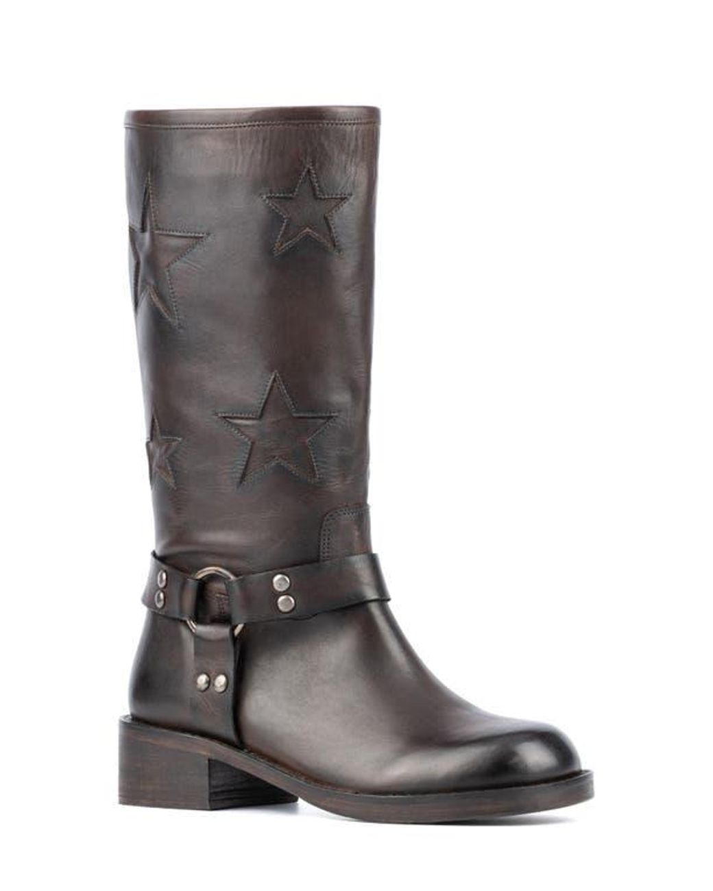 Women's Brown Vintage Leather Patchwork Knee-High Boots
